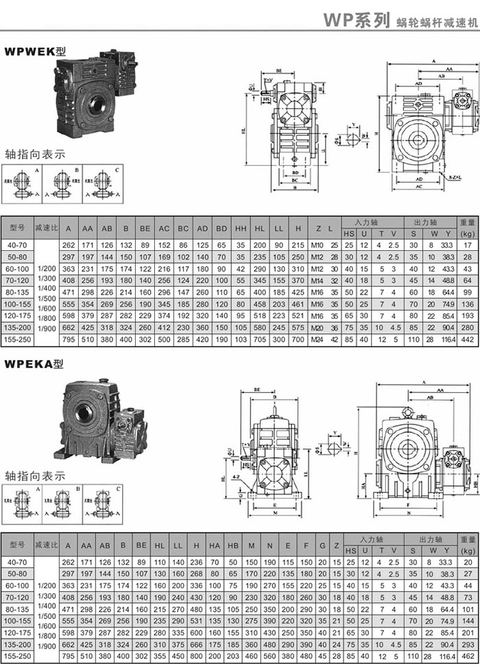WPWEK、WPEKA蝸輪減速機安裝尺寸及重量-